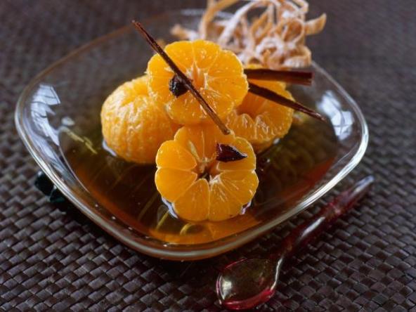 Za posluživanje, izvadite mandarine i začine u posudu, pa ih prelijte s malo sirupa.