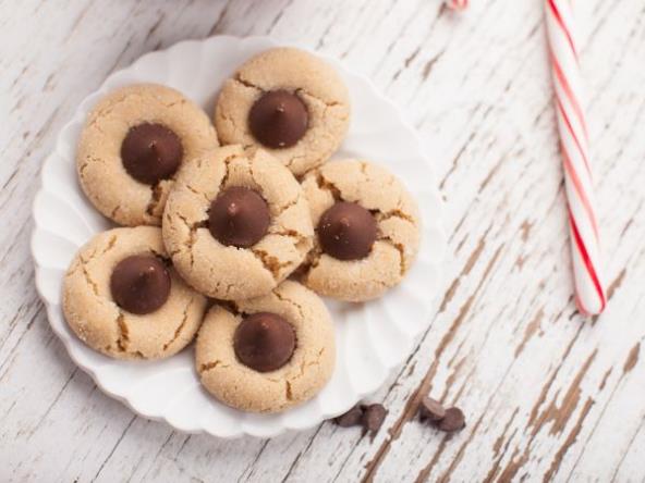 Viljuškom ili čašom malo pritisnite kuglice da dobijete oblik kolačića. Možete i malo pritisnuti prstom u sredinu kolačića kako biste dobili udubljenje u koje ćete kasnije staviti čokoladu.