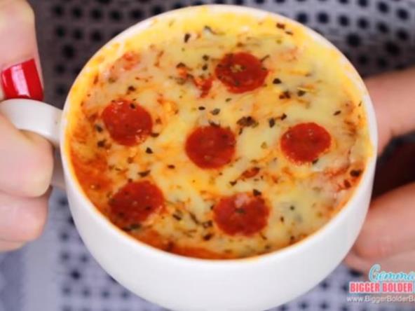 Prvo pomešajte brašno, prašak za pecivo, sodu i so, pa u to dodajte mleko i ulje, pa viljuškom sve ulupajte da se dobije testo. Preko testa stavite paradajz sos, sir, kobacisu (ili bilo šta suhomesnato) i pospite sve začinima. Ubacite u mikrotalasnu na minut i 10-20 sekundi, ili dok ne primetite da se po topingu javljaju oni predivni mehurići.