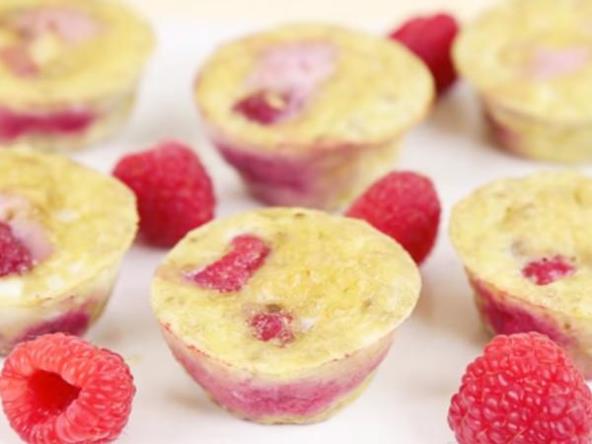 Banane izgnječite viljuškom, a jaja umutite i pomešajte sa bananama. To je čitavo testo! Kalupe za mafine malo podmažite, pa u svaki dodajte par malina. Zatim preko sipajte "testo" i pecite na 190 stepeni oko 12 minuta.