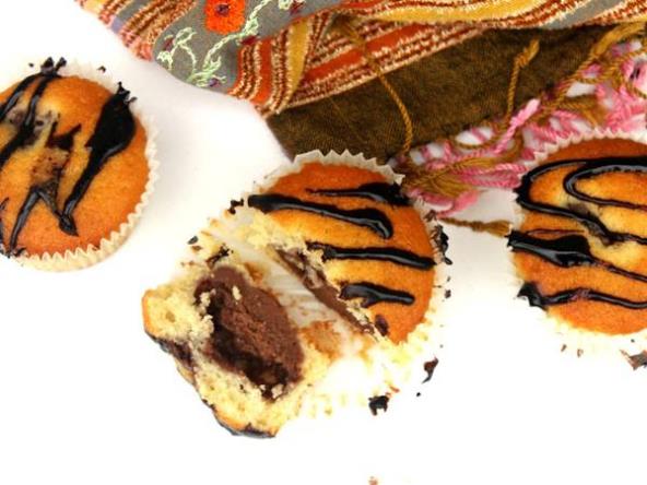 Umutiti jaja, šečer i vanilin šećer. Dodati ulje, mleko, brašno, skrob i prašak za pecivo. Pripremiti silikonski ili metalni kalup, u svako udubljenje staviti papirne korpice za mafine. U korpice staviti malo umućene mase, zatim skuvani puding i preliti preko testa. Peći na 200 stepeni oko 20 minuta.