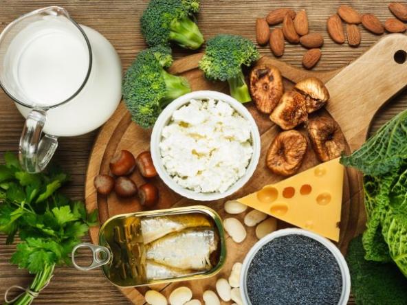 Mnoge zdrave i ukusne namirnice imaju visok sadržaj kalcijuma. Između ostalog to su obrano i nemasno mleko, mlečni proizvodi kao što su jogurt i sir, zeleno povrće (naročito spanać i kelj), žitarice, sardine, soja...