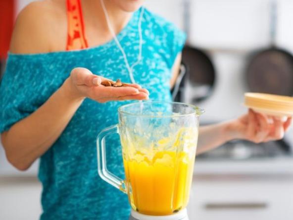 Dobro operite sve sastojke, naseckajte i izmiksujte u blenderu. Ovaj super napitak je pogodan kao doručak za sve koji žive užurbano, a žele da dobiju jutarnju injekciju zdravlja, lepote i energije, ali i da regulišu telesnu težinu.