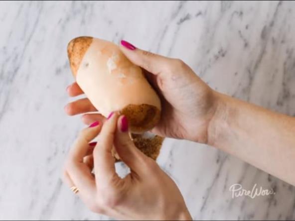 Krompir skuvajte na uobičajeni način. Kada je krompir skuvan na pet sekundi ga potopite u hladnu vodu u koju ste dodali kockice leda, a onda brzo i lako uklonite koru s ovog gomoljastog povrća.