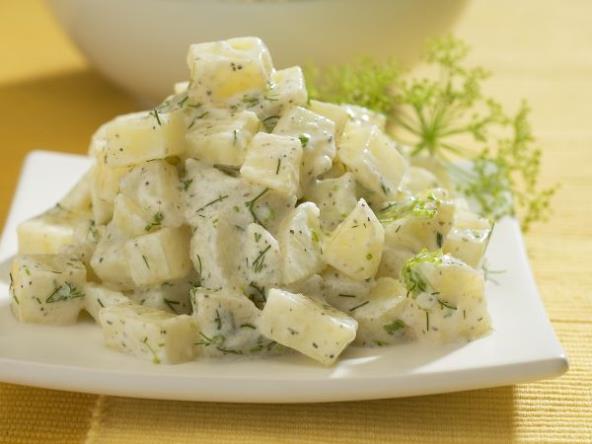 1. Skuvajte krompir u ljusci. Oljuštite ga i isecite na kockice srednje veličine.