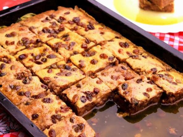 Ostavite da se kolač prohladi oko 15 minuta, isecite kocke i pustite da još upije sirup. Možete još pečen kolač izbockati čačkalicom da bolje upije. Najbolje je da ga poslužite za par sati ili sutradan.
