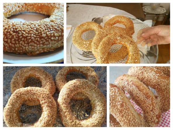 Vaditi na krpu na koju ste sipali susam. Vaditi rešetkastom kašikom i ravnom varjačom. Staviti na krpu, ali treba ih okretati naopako nego kako su se kuvali. Posuti ih i susamom sa svih strana. Ređati u pleh u koji ste stavili pek papir.