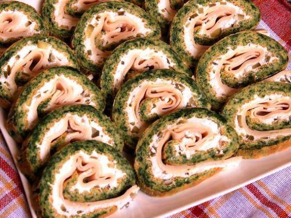 Umutiti penasto belanca pa polagano dodavati žumanca i mutiti. Dodati so, brašno, prašak za pecivo, promešati pa dodati mleko, vodu, ulje, spanać. Izmešanu masu izliti u tepsiju (34 x 30) obloženu pek papirom. Peći u zagrejanoj rerni na 180 stepeni oko 20 minuta. Vruću piškotu umotati u rolat zajedno sa pek papirom i ostaviti da se hladi oko 30 minuta. Ohlađenoj piškoti ukloniti pek papir i preko cele površine premazati premaz od krastavaca. Zatim poređati listove sira (trapista ili bilo koji drugi), preko sira listove šunkarice ili kao i ja, dimljenim ćurećim prsima.
