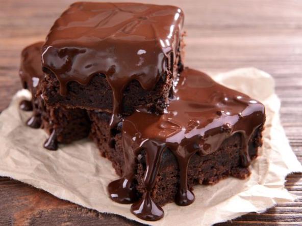 3. Kolač iseci na kocke. Preliti prvo ivice prelivom, a posle i ceo kolač.