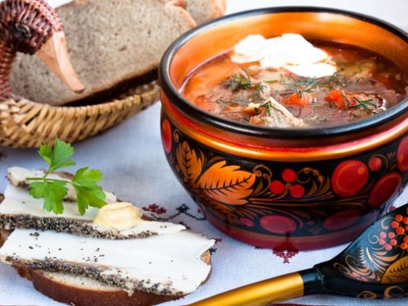 Najpopularnije su supe, osim ščija i boršča, tu su rasolnik (goveđa ili riblja supa sa kiselim krastavcima), soljanka (riblja ili goveđa supa), kalja, koja se priprema od rasola od krastavca, i okroška - hladna supa od mesa i povrća sa kvasom.