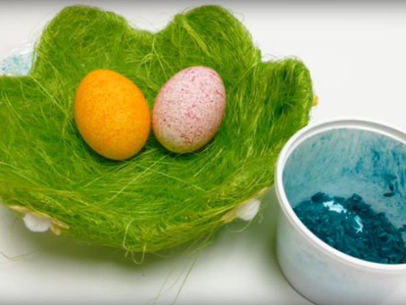 Za ovu tehniku od materijala vam je potreban pirinač, jestive boje (ekstrati) i par plastičnih čaša u kojima ćete upotrebiti farbu.