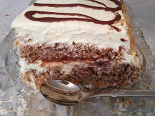 Kolač preseći na pola. Jednu polovinu namazadi debljim slojem džema a drugu šlagom pa preklopiti jednu preko druge.