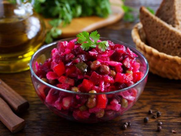 2-3 cvekle; 2 luka; Maslinovo ulje; Sirće; Prstohvat soli.