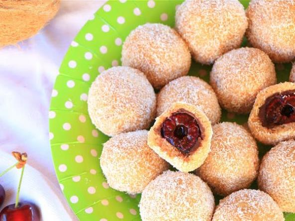 Od ove mase uzimati po malo, i obložiti čokoladnu trešnju, oblikovati među dlanovima da se napravi lepa kuglica i uvaljati u kokos.