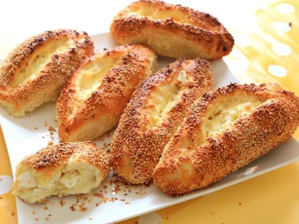 Svako punjeno pecivo zaronite u vodu izmešanu sa medom, uvaljajte u susam i slažite na tepsiju. Kuhinjskim makazama zasecite po sredini da se napravi rupa i vidi sir.
