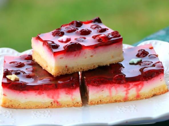 Izmešajte šećer sa praškastom smesom za preliv, dodajte sok i kuvajte kratko (ne sme da ključa), mešajte stalno. Prelijte preko hladnog kolača pa opet vratite u frižider na 1 sat. Isecite kockice i poslužite.