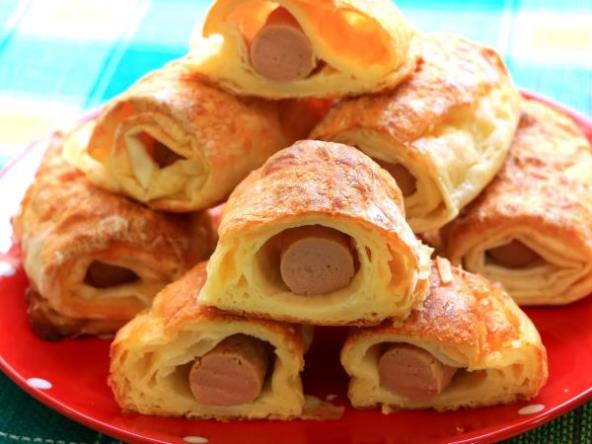 Umutite jaja, dodajte jogurt, ulje, so, brašno, prašak za pecivo. Kad je masa postala glatka kao za palačinke, uzmite jednu koru, premažite premazom, preklopite stranice prema sredini, opet premažite i sada još jednom presavijte da dobijete jednu traku. I nju premažite tanko pa na kraj stavite polovinu viršle sa koje ste skinuli najlon (ne treba ih kuvati), urolajte i slažite na podmazanu tepsiju pa ostavite da odstoji dok se rerna zagreva. Svaku premažite ostakom preliva i pecite na 220 stepeni.