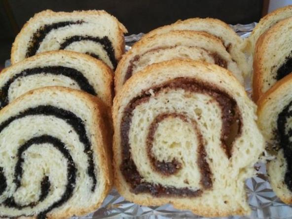 Pokriti u vanglici i ostaviti da naraste oko 30 min. Za to vreme mak i lešnik zasladiti po želji, može se dodati i suvo grožđe, ukoliko volite, i nekoliko kašika mleka da ne bude suvo. Naraslo testo podeliti na dva dela.
