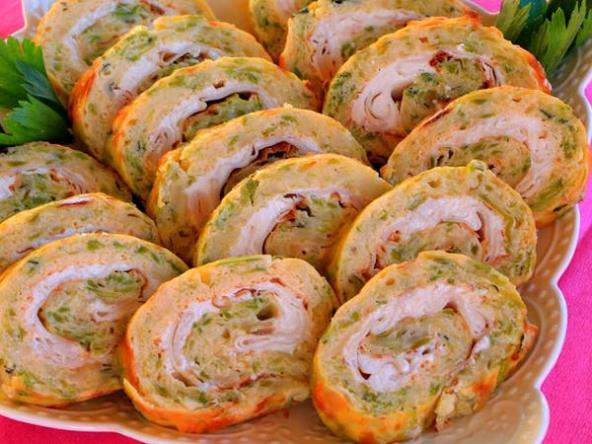Osavite da se kora ohladi pa je namažite krem sirom, složite pileća prsa i urolajte. Pre sečenja rolat obavezno treba da stoji u frižideru da se stegne i ukusi lepše spoje.