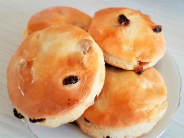 Pomešati kvasac, šećer, mleko i vodu i ostaviti 3-5 minuta da se klvasac aktivira. Zamesiti testo od navedenih sastojaka i prekriti krpom. Posle 45 minuta razvaljati, oblikovati pogačice i staviti na svaku pogačicu list margarina. Peći na 200 stepeni oko 25 minuta. Gotove pogačice premazati medom. U nastavku se nalazi video sa detaljnim načinom pripreme! Prijatno!