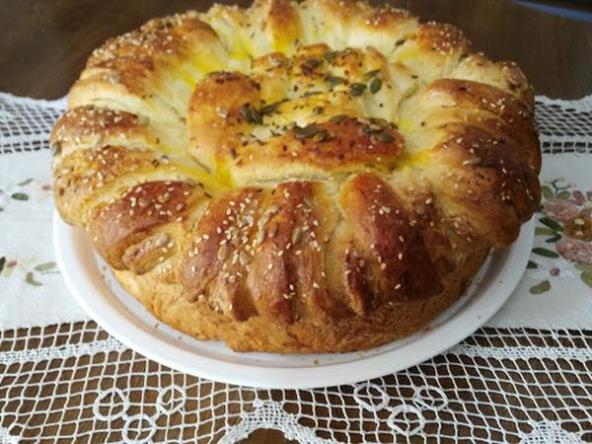 Ostaviti pogaču da naraste, pa je premazati žumancetom i posuti semenkama i krupnom solju po želji. Peći na 180 stepeni 45 min.
