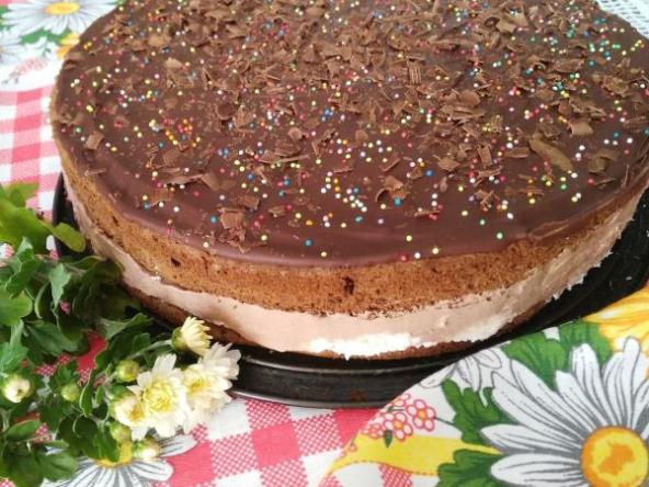 Umutiti šlag kremu od vanile i u nju dodati 4 kašike kokosa i dobro sjediniti. Posebno umutiti šlag krem od čokolade. Na prvu koru staviti kremu sa kokosom, a zatim šlag kremu sa čokoladom. Pokriti drugom korom. Preliti rastopljenom čokoladom. Ostaviti da se dobro stegne.