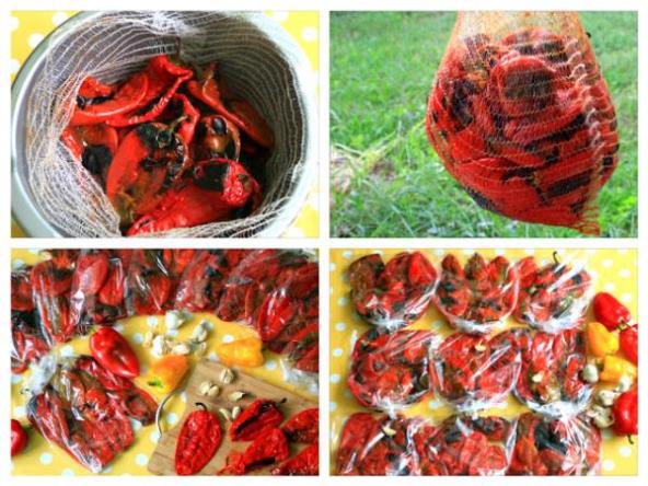 U vanglu stavite opran džak, raširite ga preko ivica pa ređajte pečene paprike. Tako radite sve do kraja. Kada su sve ispečene, džak zavežite za neku šipku jer paprike treba da se ocede od tečnosti.
