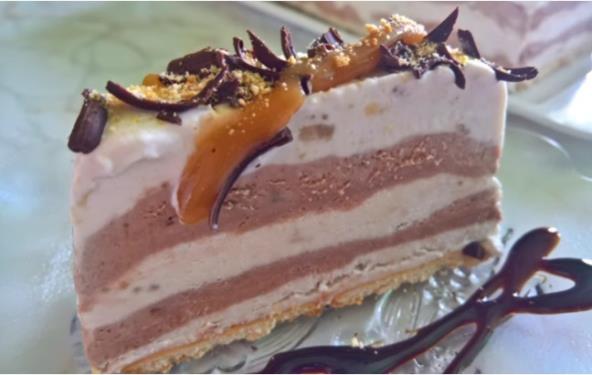 Kalup dimenzija 28x12 cm obložite providnom folijom, pa sipajte 1/3 belog fila, pa polovinu crnog fila, pa 2/3 belog fila, zatim drugu polovinu crnog fila i poslednji deo belog fila. Složite keks preko i prekrijte folijom. Ostavite u zamrzivači 3-4 sata. Kada je kolač gotov okrenite i dekorišite po želji.
