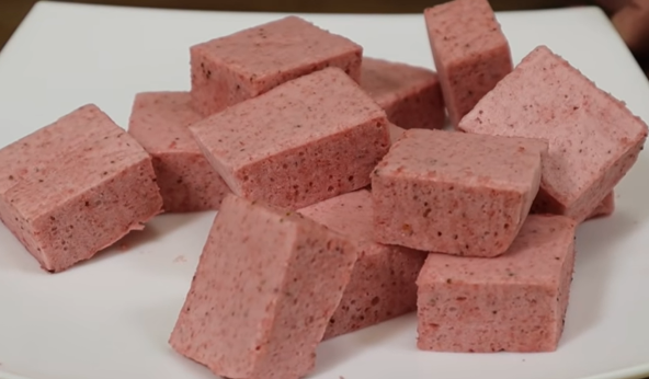 U blenderu usitnite jagode, a zatim prespite u posudu, pa dodajte želatin i promešajte. Zatim dodajte i šećer u prahu, promešajte, pa kuvajte kratko. Gotovu smesu dobro umutite dok ne promeni boju, pa sipajte u neku posudu prvo malo nauljenu, pa obloženu pek papirom. Stavite u frižider na par sati.
