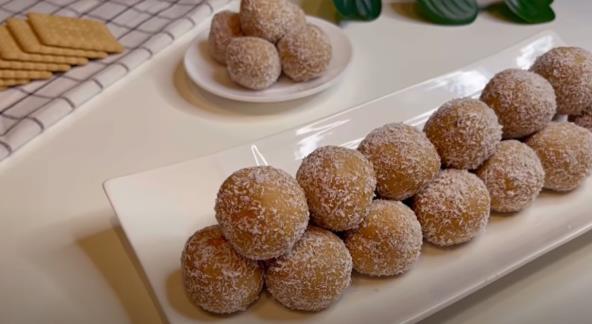 U vangli pomešajte izgnječene banane i keks. Mesite masu rukama da se izjednači. Uzimajte male komade i pravite kuglice. Gotove kuglice uvaljajte u kokos i ostavite u frižider da se ohladi ili ih odmah možete jesti.