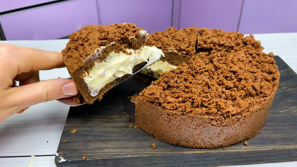 Keks sameljite, pa pomešajte sa istopljenim puterom. Stavite u pleh koji ste obložili pek papirom i ivice obložite. Keksom pređite i po ivicama kalupa, pa sipajte fil. Preko fila pospite ostatak keksa. Stavite u frižider na 3 sata.