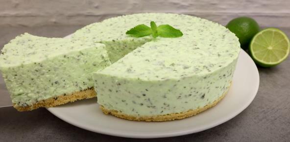 Keks sameljite ili uzmite već mleven, pomešajte sa otopljenim puterom i stavite na dno kalupa prečnika 18cm. Nanu i sok od limete usitnite u secku ili blenderu. Želatin rastvorite u vodi. U vangli umutite mikserom maskarpone i kondenzovano mleko pa postepeno dodajte slatku pavlaku. Zatim ubacite usitnjenu nanu i rendanu koricu limete i promešajte. Sa malo prehrambene zelene boje obojite smesu.