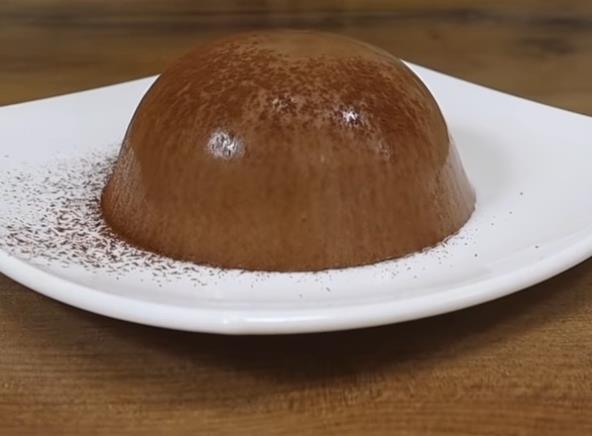Otopite čokoladu sa zagrejanim kokosovim mlekom (150 ml). Zatim preostalo kokosovo mleko zagrejte, pa dodajte šećer, želatin i vodu. Kuvajte dok ne proključa uz konstantno mešanje. Sipajte preko čokolade i promešajte. Dobijenu smesu sipajte u posudu. Ostavite kratko u frižideru. Gotov kolač možete da pospete kakaom.