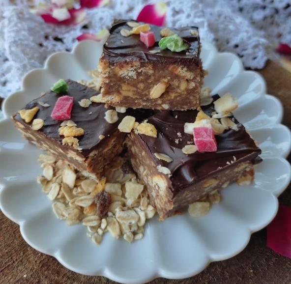 Kolači koji se ne peku, pa još sa čokoladom i keksom su svima omiljena kombinacija. Kada su napolju visoke temperature ne pada vam teško da pravite ove jednostavne poslastice jer samo treba da smućkate sastojke. Ovsene pahuljice i orahe ne morate da stavljate ako ne volite.