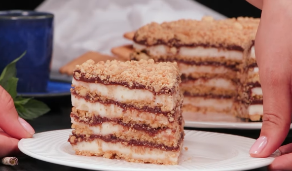 Torte ili kolači koji se ne peku su idealni za sve vrste proslava, ali i kada vam se jede nešto slatko, a mrzi vas da pečete patišpanj, pa razne filove i glazure. Ova torta možda na prvi pogled deluje kao da vam treba puno vremena za pripremu, ali vam neće oduzeti mnogo. Uz malo truda i strpljenja dobićete prelepu poslasticu od izmrvljenog testa, kao i sa 2 različita fila.
