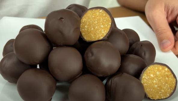 Kikiriki samleti u blenderu, pa pomešati sa mlevenim keksom. Dodati dve kašike kikiriki putera i šećer, potom sve dobro sjediniti. Oblikujte kuglice rukama i ostavite u frižideru nekih sat vremena da se stegnu. Čokoladu otopite i jednu po jednu kuglicu umočite. Ređajte na pek papir dok se čokolada ne stvrdne, a potom ih možete poslužiti.