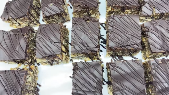 Ove izdašne i hranljive pločice su savršena užina pre treninga. Takođe je odlična opcija za zasladiti se. Ako želite da bude još čokoladnije, dodajte 1-2 kašike kakaoa. Veoma je ukusno i zdravo.