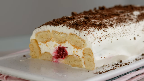 Ukusan, lagan i umereno sladak kolač. Ne peče se i brzo je gotov. Možete ga napraviti u obliku rolata i biće i dekorativan na trpezi kada ga poslužite. Kombinaciju višanja sa filom od sira i piškote svi vole.