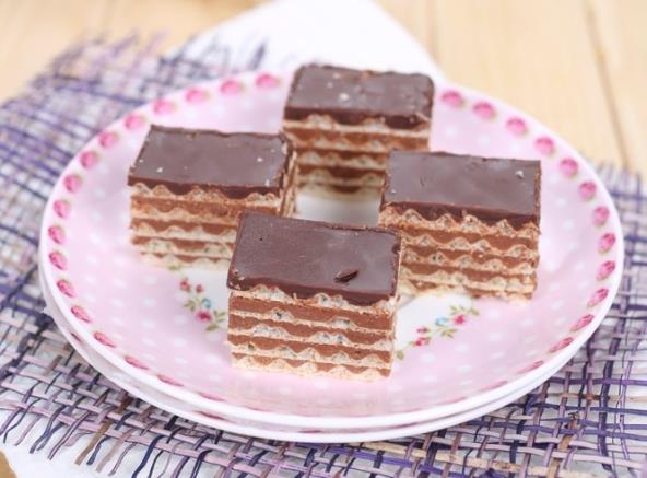 Jaja i šećer sjedinite žicom, ne mikserom dok blago ne zapene. Smesu stavite da se kuva na pari, vodeći računa da sud u kome su jaja voda ne dodiruje. Kuvajte na pari sve vreme mešajući, dok se kristali šećera ne istope, a jaja postanu gusta. Potom dodajte izlomljenu čokoladu i sve mešajte dok se čokolada ne istopi. Smesu ostavite da se ohladi u potpunosti. Puter dobro umutite mikserom, pa dodajte kašiku po kašiku ohlađenog fila od čokolade. Sve dobro sjedinite mikserom. Fil podelite na četiri jednaka dela, pa filujte oblande. Nafilovane pritisnite nečim teškim, kako bi se bolje zalepile. Kada su se potpuno ohladile nanesite glazuru. Čokoladu otopite sa uljem na tihoj vatri ili pari, pa prelijte oblande. Ostavite da se čokolada stegne, pa secite na parčiće željene veličine i poslužite.