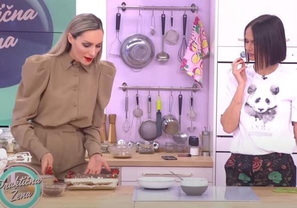 Gošća u emisiji "Praktična žena" bila je Jelena Gavrilović trenutno jedna od najlepših glumica na našoj sceni. Ona je pravila tiramisu sa jagodama, koji je gotov za tren oka, a njen savet sa sve one koji se boje da stavljaju termični neograđena jaja je da kolač treba da drže nekoliko sati u frižideru.