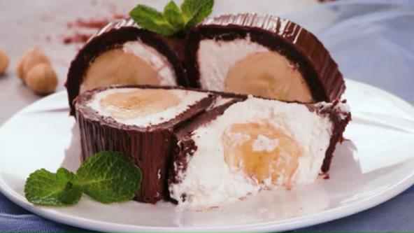 Pomešajte mleveni keks, nutelu, mleko i istopljeni puter, pa sve dobro sjedinite. Stavite na providnu foliju i razvucite koru u obliku kvadrata. Umutite slatku pavlaku sa šećerom u prahu i premažite koru, pa na krajte stavite banane. Svaki kraj rolajte ka sredini u isto vreme. Pokrijte providnom folijom i ostavite u frižideru sat vremena. Premažite nutelom.