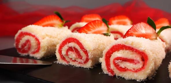 Poslastice koje se ne peku su idealne kada dođu vrućine, jer su osvežavajuće, a nema puno stajanja pored šporeta. Čuveni turski specijalite, sultan rolnice, su super jer se prave sa kokosom, belim filom, a u ovoj verziji i sa filom od jagoda. Uživaćete u svakom zalogaju, a da vam ne bi popucali dok ih rolate, koristite špatulu.