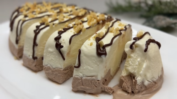 Umutite slatku pavlaku, pa dodajte kondenzovano mleko. Opet umutite, pa smesu podelite na 2 jednaka dela. Jedan deo sipajte u kalup obložen providnom folijom, pa stavite u frižider da se malo stegne. U drugi deo fila sipajte kakao i umutite. Sipajte preko belog fila, pa zatvorite providnom folijom i stavite u zamrzivač na 2 sata. Ukrasite istopljenom čokoladom i orasima ili nečime po vašoj želji.
