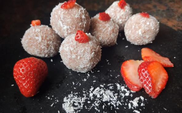 Kuglice koje ukusom podsećaju na Rafaelo, ali umesto badema unutra se nalaze jagode, što je još jedan od načina da iskoristite ovo sočno voće dok mu je sezona. S ovim receptom nema greške jer svi znamo da su jagode i bela čokolada uvek dobra kombinacija.