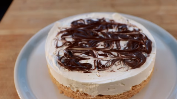 Mleveni keks pomešajte sa puterom i sjedinite smesu. Utisnite u kalup i stavite u frižider pola sata. Slatku pavlaku umutite i dodajte jogurt, pa opet sjedinite mikserom. Na kraju dodajte i šećer i lepo umutite. Sipajte preko keksa. Ukrasite nutelom. Kratko ohladite u frižideru.