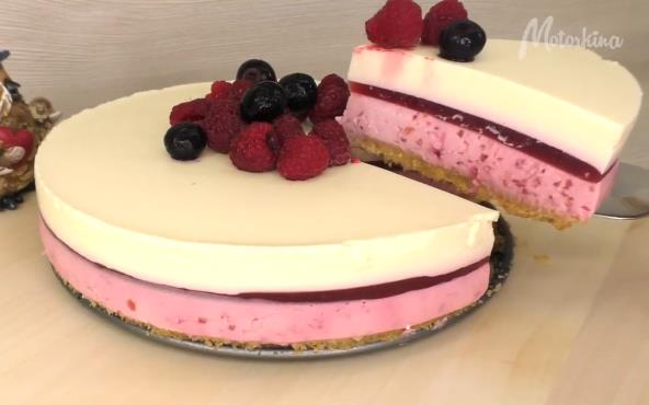 Dok je kod nas najpoznatija i najpopularnija klasična varijanta čizkejka sa belim filom i prelivom od voća, sigurni smo da će vas ovaj recept oduševiti. Dvobojni kolač sa filom od malina i drugim od bele čokolade osvaja na prvi zalogaj. Priprema nije previše komplikovana, samo je potrebno da se filovi dobro ohlade da se boje ne bi izmešale.