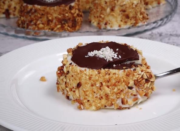 U mleko dodajte šećer, vanilin šećer, brašno i skrob. Sjedinite sastojke, pa kuvajte uz konstantno mešanje, na niskoj temepraturi, dok se ne zgusne. Pazite da se ne naprave grudvice. Sklonite sa šporeta, pa dodajte puter i lepo sjedinite. Sipajte u čaše, malo ih protresite da se smesa lepo rasporedi, a zatim ih pokrijte providnom folijom i stavite u frižider na 2 sata. Izvadite iz čaše i presecite na pola. Uvaljajte ivice u seckani kikiriki, a na vrh sipajte istopljenu čokoladu i pospite kokosom. Stavite u frižider da se čokolada stegne.