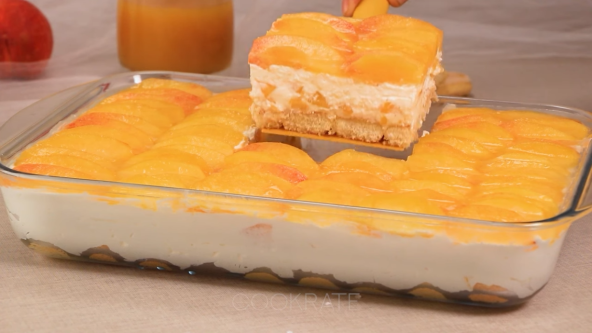 Iskoristite sezonu bresaka i napravite odličan kolač od svega par sastojaka. Elegantan i ukusan, a baš se lako pravi. Preko keksa samo sipajte fil koji ste umutili, poređajte breskve i prelijte želatinom. To je sva nauka, a najbolje od svega je što namirnice za ovaj kolač uopšte nisu skupe.
