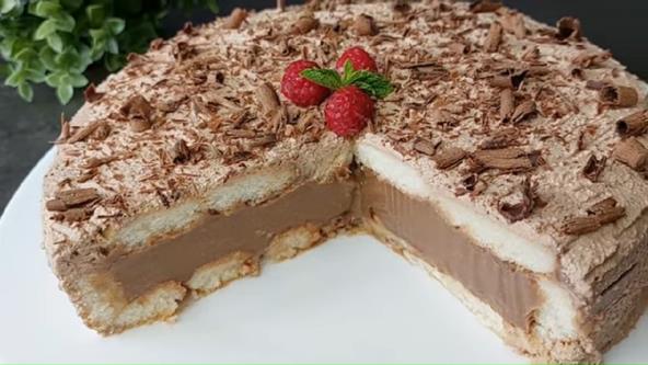 U šerpi pomešajte jaja, šećer i vanilin šećer, pa umutite. Dodajte brašno i mleko i dobro sjedinite. Kuvajte dok se ne zgusne, uz neprestano mešanje, pa dodajte čokoladu i nastavite da mešate dok se ne otopi. Sklonite sa šporeta, pa dodajte šlag u prahu i puter sobne temperature i dobro umutite. Piškote umočite u mleko, pa poređajte po dnu i ivicama kalupa prečnika 24 cm koji ste obložili providnom folijom. Sipajte fil preko. Zatvorite piškotama umočenim u mleko i pokrijte providnom folijom, pa ostavite u frižideru preko noći. Umutite slatku pavlaku, pa dodajte nutelu i sjedinite mikserom. Premažite celu tortu i dekorišite rendanom čokoladom.