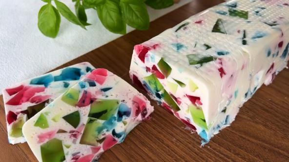 Sipajte obojeni žele u različite posude. Svaki od njih rastvorite u 250 ml ključale vode. Ostaviti da se ohladi, pa staviti u frižider dok se potpuno ne koncentriše. Providni žele rastvoriti u 250 ml ključale vode i ostaviti da se ohladi (žele treba da se ohladi, ali ne i stegne). U posebnoj posudi umutite pavlaku dok ne postane čvrsta. Zatim postepeno sipajte tečni, ohlađeni providni žele. Izvadite žele u bojama iz frižidera i isecite ih na kockice. Stavite u kremastu masu i lagano izmešajte kašikom. Sve sipajte u pleh obložen prozirnom folijom. Stavite desert u frižider, najbolje preko noći, dok se potpuno formira.